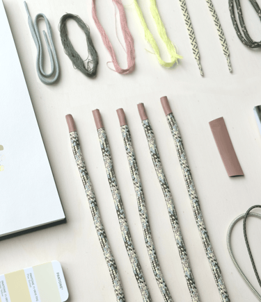 Création de tissages, tressages, dentelles, tricots et impressions textiles.